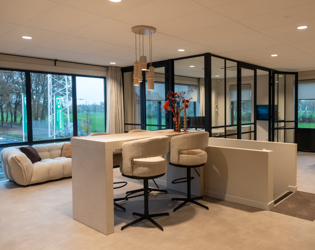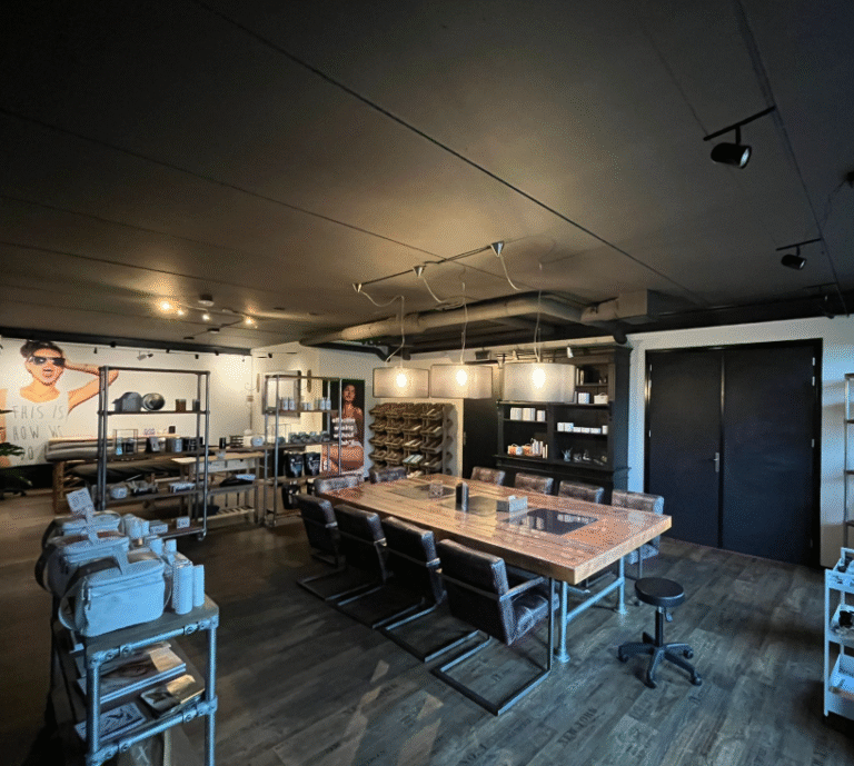 Op de begane grond bevinden zich de binnenkomsthal, showroom, keuken, praktijkruimte en het theorielokaal. Deze ruimtes zijn zo ingericht dat bezoekers zich direct welkom voelen en op een fijne manier worden meegenomen door het bedrijf. De combinatie van sfeer, functionaliteit en herkenning zorgt voor een sterke eerste indruk en een warme herinnering.