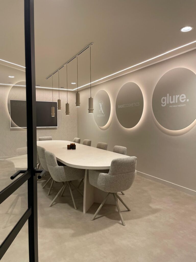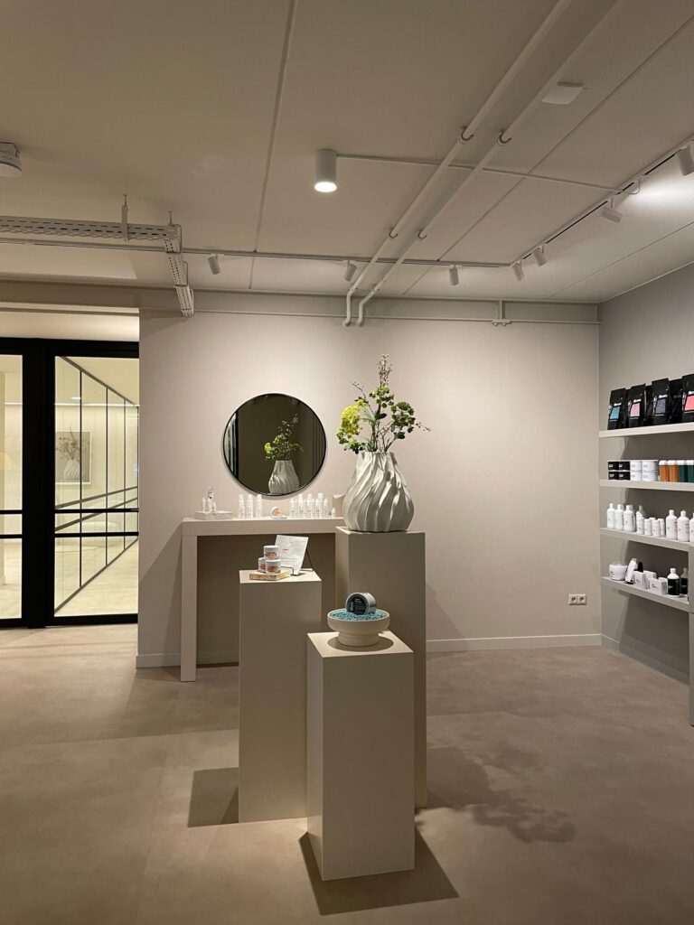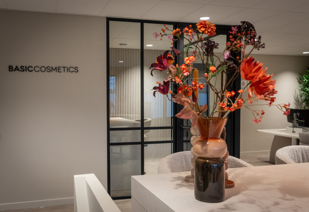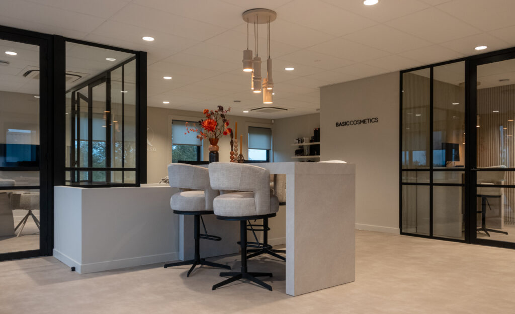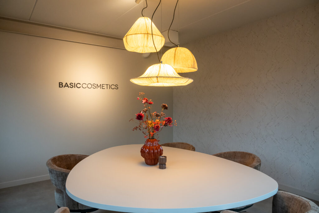 Voor de showroom en kantoor van Basic Cosmetics in Harbrinkhoek ontwierp ik een interieur dat het merk in alle ruimtes laat spreken. De stijl is modern, warm en minimalistisch. Er is rekening gehouden met vloeiende looproutes tot slimme opbergsystemen die de producten op een mooie manier presenteren. In het interieur komen ook de merkwaarden terug in materiaalgebruik, kleur en vorm. Het doel is om een fijne productieve werkomgeving te creëren waarin medewerkers zich prettig voelen en klanten het merk kunnen ervaren op een manier die bijblijft.