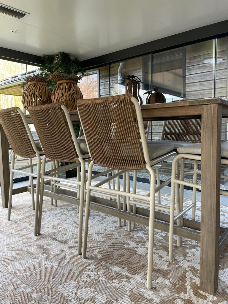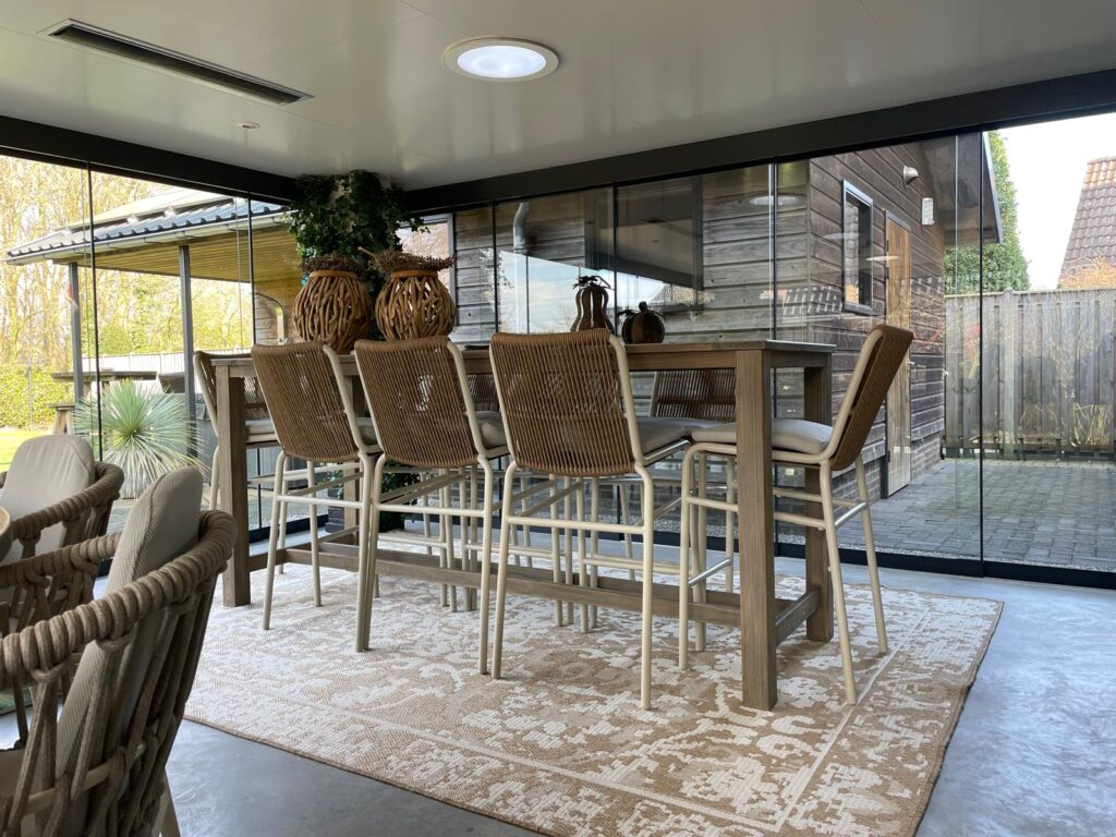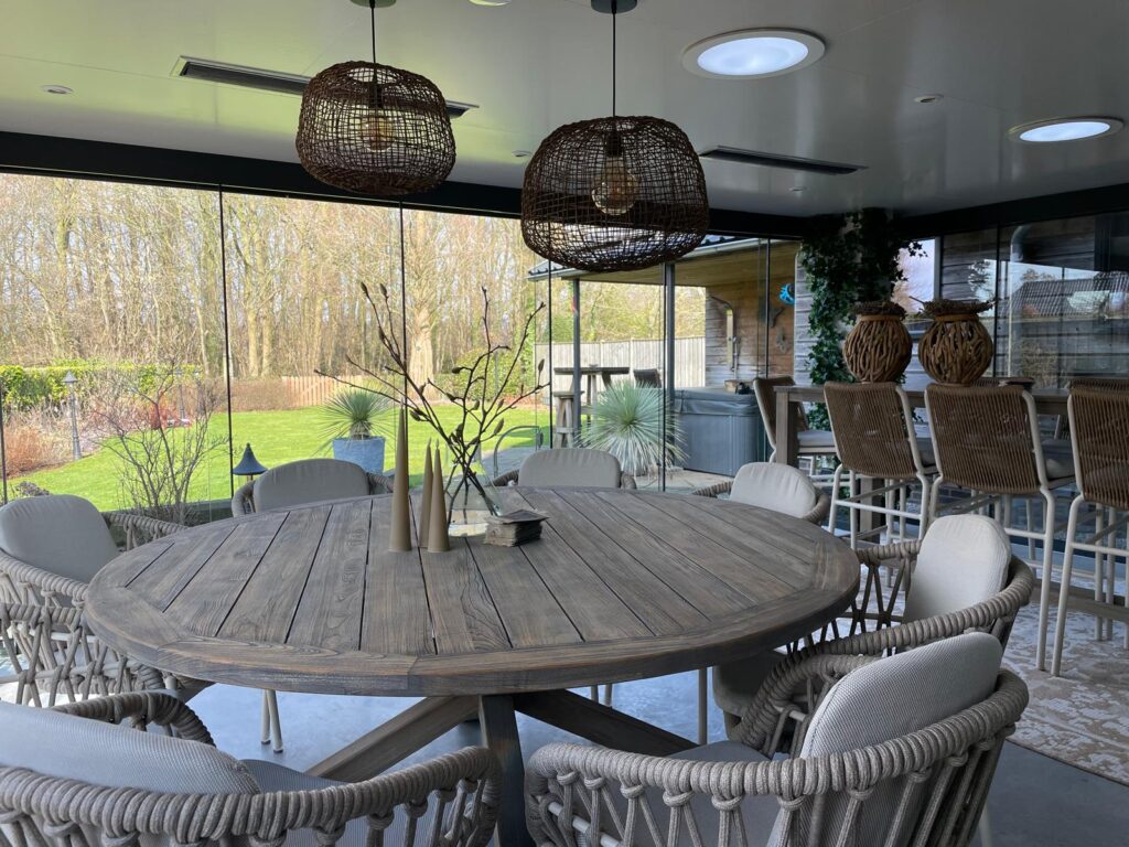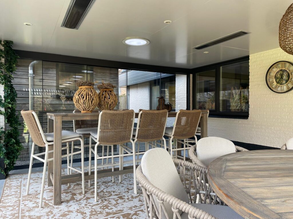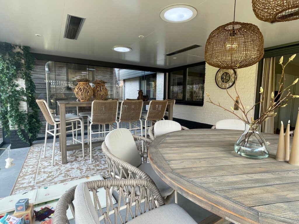 Deze plek is geworden wat we voor ogen hadden: een warme, sfeervolle ruimte waar binnen en buiten samenkomen. Een plek waar kinderen vrij kunnen spelen, lange avonden met familie aan tafel worden doorgebracht en waar je je direct thuis voelt. Door het gebruik van natuurlijke, warme materialen straalt de ruimte rust uit, en door het speelse effect van ronde vormen ontstaat er extra gezelligheid. Er is een mogelijkheid om zowel hoog als laag te zitten, waardoor de ruimte voor meerdere gelegenheden gebruikt kan worden.
