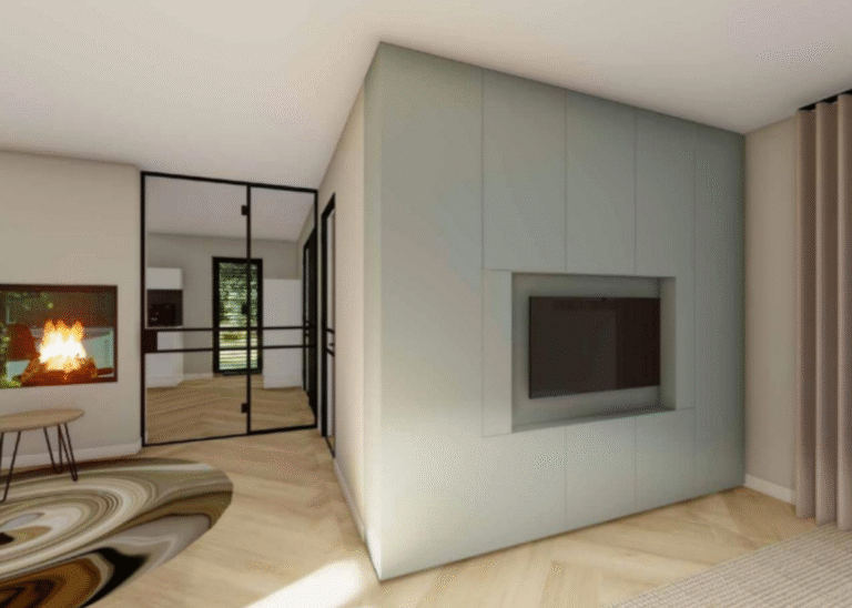 In deze duurzame woonvilla in Eindhoven is er gekozen voor de stijlen modern, chique en eenvoud. Het interieur straalt rust uit maar biedt tegelijkertijd alles wat nodig is om comfortabel te wonen. In de woonkamer ontwierp ik een strakke kastenwand met slimme opbergoplossingen, zodat functionaliteit en stijl hand in hand gaan.